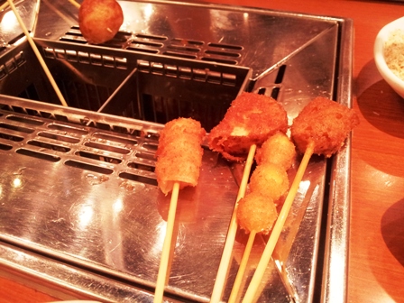 んでおいしいのね、串かつ。バイキング形式で90分食べ放題。串かつの具が豊富な上にカレーライスやお茶漬けやデザートまでお好きにどうぞなお店。
